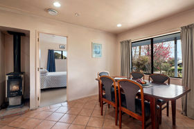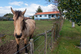 The living areas are open plan, cosy and easy to live in with views out across the paddock.