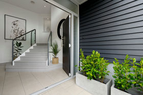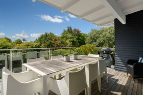 Double doors open to an atrium style entrance with over height ceiling and glass framed stairs leading up to light and bright open plan living, with a sleek modern kitchen, fabulous walk-in scullery and easy access through bifold doors to the wide deck stretching the entire width of this family sized home. Ideal for ease of entertaining: dining, casual living and a spacious lounge all open to the deck for seamless indoor/outdoor flow and a lovely outlook over neighbouring tree tops and the large manicured and private back lawn with room enough for a pool if so desired.