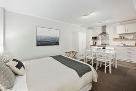 The 234sqm main residence spans two thoughtful levels, with the upper floor filled with natural light throughout the day. Open-plan living, dining, and kitchen spaces connect effortlessly to wraparound decking, creating an easy flow between indoors and out. Large french doors invite alfresco dining, morning coffee among the trees, and relaxed gatherings on warm summer evenings. Three well-proportioned bedrooms and a modern family bathroom complete this level, while a covered carport provides direct, sheltered access into the home.
