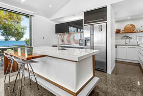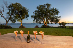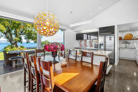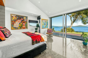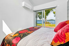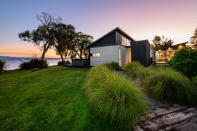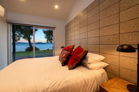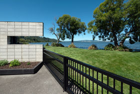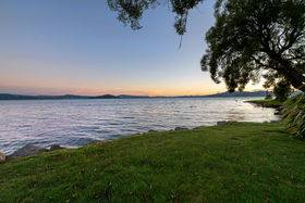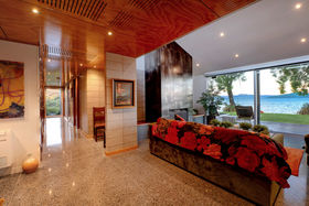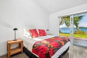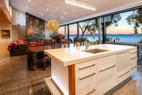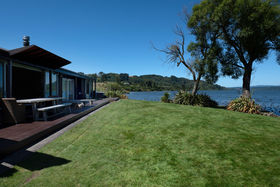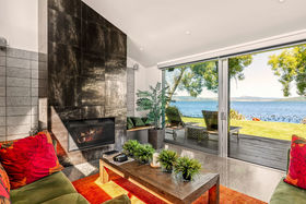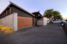 In a rare, absolute lakeside position in Hamurana, this impressive lawn-to-lake property delivers a premium retreat in an extraordinary setting. Designed for captivating views at every turn, the home combines a high-quality aesthetic with comfort for a truly luxurious living experience. From its block and board & batten exterior to the polished concrete flooring & timber highlights within, the home exudes a refined, understated style that works in harmony with the natural surroundings. At the front, the lawn stretches out to the lakes edge and there's a private beach area to launch your kayaks or paddle boards, or step out for a refreshing swim. The open plan living space is positioned to maximise the lake views, offering a stunning setting whether you are relaxing indoors or out on the deck. The designer kitchen blends style and function, with a Butler's Pantry, an induction hob, underbench oven and ambient lighting to enhance the atmosphere. The second living area is another standout, enhanced with acoustic panels and outdoor access to a patio with views to the hills beyond. Three double bedrooms, including a fully appointed master suite, each enjoy picturesque lake views and the home's layout also has an office space, and internal access garage. All year round comfort is assured with a fireplace, a heat pump, double glazing, underfloor heating in the ensuite and two heated towel rails plus an OmniCore Multi Room Heat Pump System for the bedrooms. Security and technology features include gated entry to the property and keypad access at the front door, security cameras, multi room audio, speakers in the garden, and feature lighting including motion sensors and illuminated trees. Hamurana is a great location with world class trout fishing and water sports just beyond your doorstep, a nine hole golf course close by and lakeside walks. After your day's activities, soak in your spa pool as the city lights come to life across the lake. While you relax, the Husqvarna robotic mower can go to work mowing the lawn. Beautiful landscaping, meticulously presented. This is a very rare opportunity to secure a premium lakeside sanctuary.