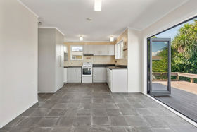 All three bedrooms are well sized and supported by a tidy bathroom plus a separate toilet. The spacious kitchen and dining area open through bi-fold doors to sunny decking, creating a practical indoor-outdoor connection for everyday living. From here, the outlook stretches across the terraced backyard - a substantial space with room to further develop into a defined entertaining area, garden, or family play space.